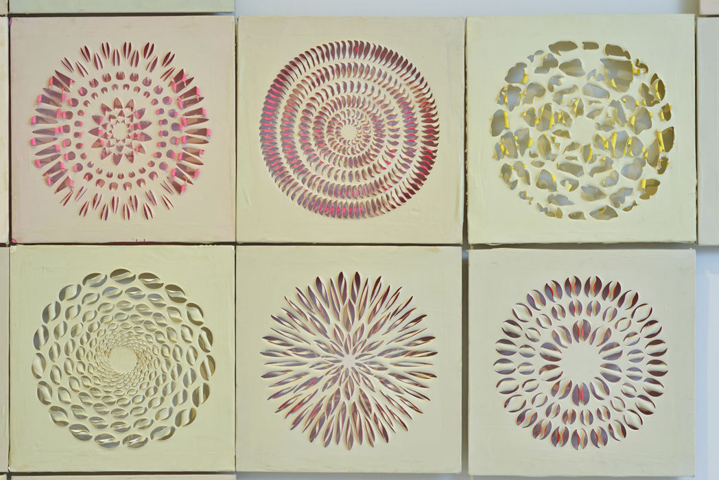 עשרים וארבעה אריחים דמויי אבן חושפים פני שטח תלת-ממדיים, הנוצרים מתוך מתח פנימי בין שתי שכבות של גומי לטקס טבעי. כל שכבה נמתחת בכיוון שונה, וההדבקה ביניהן יוצרת מצב של תסכול חומרי. חיתוך בלייזר בדוגמה רדיאלית משחרר את המתח, והמערכת המודבקת מתקפלת, מתעוותת ומסתלסלת. פני השטח המתקבלים מדגימים שליטה מדויקת בעיוות החומר, ומציגים מורכבות צורנית שאינה ניתנת להשגה בשום טכנולוגיה אחרת עבור חומרים אלה. העבודה פותחת מרחב של חקירה צורנית, שבו כל אריח מדגים וריאציה אחרת של עיוות נשלט ומתוזמר, וממחישה את הפוטנציאל לעיצוב מורכב מתוך החומר עצמו—בין היתר ביישומים של אדריכלות ועיצוב פנים.